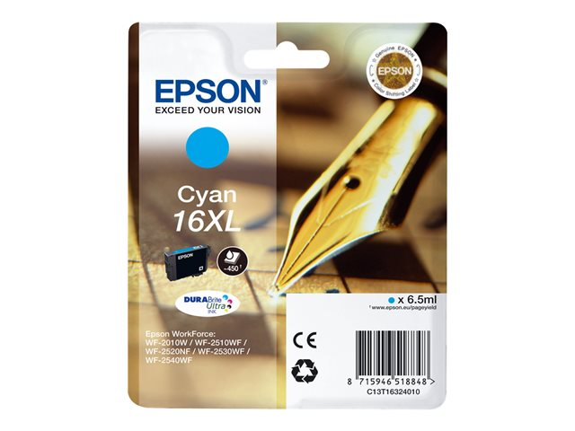 Epson 16XL - 6.5 ml - XL - cyan - original - bläckpatron - för WorkForce WF-2010, 2510, 2520, 2530, 2540, 2630, 2650, 2660, 2750, 2760