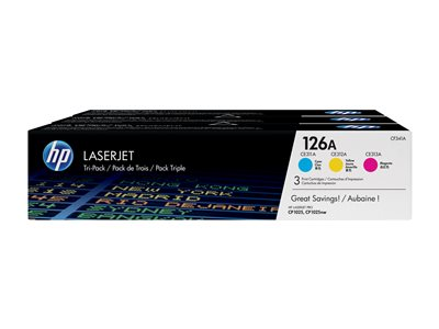 HP 126A - 3-pack - gul, cyan, magenta - original - LaserJet - tonerkassett (CF341A) - för Color LaserJet Pro CP1025; LaserJet Pro MFP M175; TopShot LaserJet Pro M275