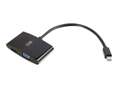 C2G 20cm Mini DisplayPort to HDMI or VGA Adapter Converter 4K UHD - Black - Videokort - Mini DisplayPort hane till 15 pin D-Sub (DB-15), HDMI hona - 20.3 cm - skärmad - svart - stöd för 4K