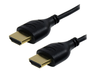 The HDMIMM3HSS 3-foot Slim High Speed HDMI Cable supports advanced capabilities, including Ethernet data inter connectivity with compatible HDMI-capable devices, and features a thin cable design (3.5mm in diameter).