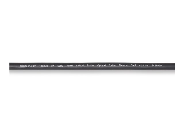StarTech.com 50ft (15.2m) HDMI 2.1 Hybrid Active Optical Cable (AOC), CMP, Plenum Rated, 8K Ultra High Speed HDMI Fiber Optic Cable, 48Gbps, 8K 60Hz/4K 120Hz, HDR10+/FRL/TMDS/eARC - CMP In Wall HDMI 2.1/2.0 Cord (8K-A-50F-HDMI-CABLE) - Ultra High Speed - HDMI-kabel - HDMI hane till HDMI hane - 15.2 m - hybrid koppar/fiberoptisk - svart - Active Optical Cable (AOC), 4K120Hz stöd, 8K60Hz stöd, 4K60Hz stöd