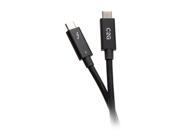 C2G 2.5ft Thunderbolt 4 USB C Cable - USB C to USB C - 40Gbps - M/M - Thunderbolt-kabel - USB-C (hane) till USB-C (hane) - USB 3.2 / DisplayPort 2.1 / Thunderbolt 4 - 30 V - 76 cm - USB-strömförsörjning (100W), 8K60Hz stöd, 4K60 Hz (4096 x 2160) stöd, Ethernet-stöd - svart