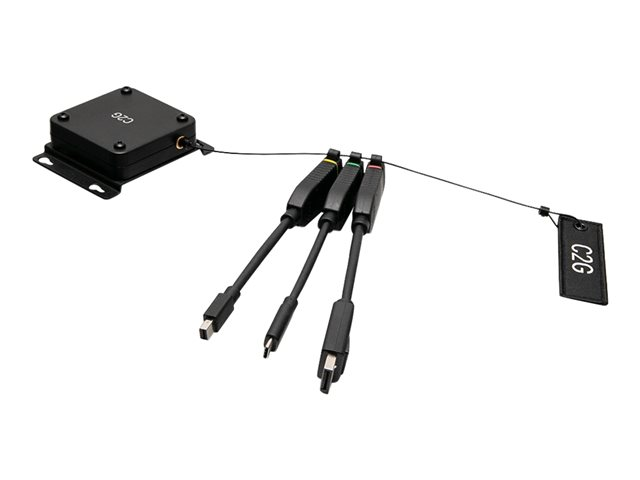 C2G 4K HDMI Dongle Adapter Ring with Mini DisplayPort, DisplayPort, and USB C - Retractable Universal Mount - Videoadaptersats - svart - stöd för 4K C2G30029