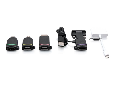 | Inkluderad kvantitet x Typ | Videokort - Mini DisplayPort (hane) till 19 pin HDMI typ A (hona) Videokort - 20-stifts DisplayPort (hane) till 19 pin HDMI typ A (hona) Videokort - 24-stifts USB-C (hane) till 19 pin HDMI typ A (hona) Videokort - Lightning (hane) till 19-stifts HDMI typ A/24-stifts USB-C (hona) Videokort - 15-stifts HD D-Sub (HD-15) / 4-stifts USB typ A (endast ström) (hane) till 19 pin HDMI typ A (hona) |