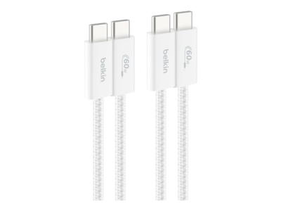 Belkin BoostCharge - USB-kabel - USB-C (hane) till USB-C (hane) - 1.5 m - Snabbladdning upp till 60 W - vit (paket om 2)