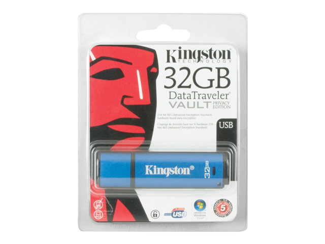 Kingston DataTraveler Vault - Privacy Edition - USB flash-enhet - krypterat - 32 GB - USB 2.0 - blå