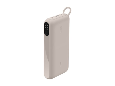 Belkin BoostCharge - Power bank - med display - 20000 mAh - 20 Watt - PD - 3 utdatakontakter (2 x USB-C, USB) - på kabel: USB-C - sand