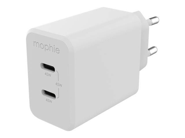 mophie speedport 45 - Strömadapter - 45 Watt - Fast Charge, PD - 2 utdatakontakter (24 pin USB-C) - vit - Europa