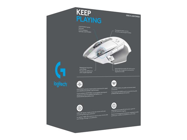 Logitech G G502 X LIGHTSPEED - Mus - optisk - 8 knappar - trådlös - 2.4 GHz - USB Logitech LIGHTSPEED-mottagare - vit