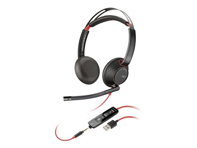 HP Poly Blackwire C5220 - Blackwire 5200 series - headset - på örat - kabelansluten - USB-A, 3,5 mm kontakt - svart - Certifierad för Microsoft-teams, Certifierad för Skype for Buisness, Certifierad för Zoom Rooms, Cisco Jabber-certifierad, Avaya-certifierad