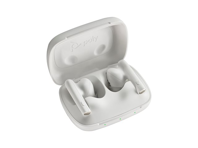HP Poly Voyager Free 60 UC M - True wireless-hörlurar med mikrofon - inuti örat - Bluetooth - aktiv brusradering - USB-A via Bluetooth-adapter - sandvit - Certifierad för Microsoft-teams