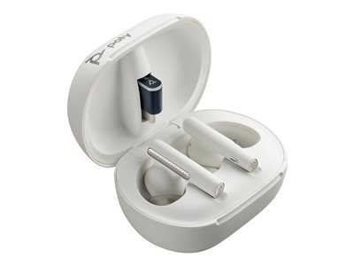 HP Poly Voyager Free 60+ UC - True wireless-hörlurar med mikrofon - inuti örat - Bluetooth - aktiv brusradering - USB-A via Bluetooth-adapter - sandvit - Zoomcertifierad 7Y8G5AA