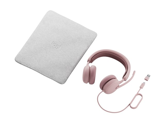 Logitech Zone Wired 2 for Business - Headset - på örat - kabelansluten - aktiv brusradering - rosa - Certifierad för Microsoft-teams