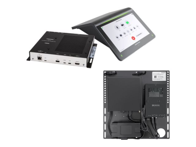 Alongside a complete kit that includes a touchscreen console, mini-PC, HDMI to USB 3.0 Converter, and a transmitter, the Crestron Flex relates to various connectivity options, with cables provided for HDMI, USB, and DisplayPort. An external power adapter allows for flexibility in placement, while the built-in occupancy sensor enhances energy efficiency in meeting spaces. This compact solution is simple to set up and powerful enough to enhance video conferencing sessions.