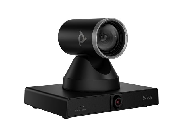 EgenskaperMotoriserad panna, motoriserad lutning, motoriserad zoomning, dubbel lins, 71° horizontal field of view (PTZ camera), 107° horizontal field of view (panoramic camera), 42.7° diagonal field of view (PTZ camera), up to 8 m camera range, Group framing, presentatörsspårning, Poly DirectorAI-teknik