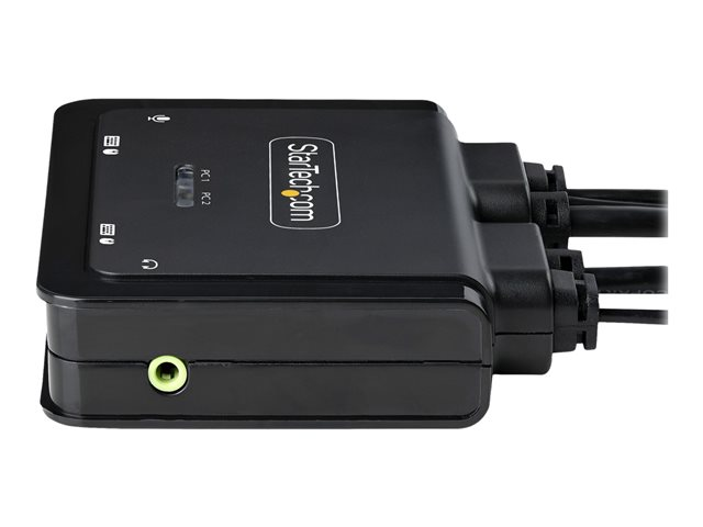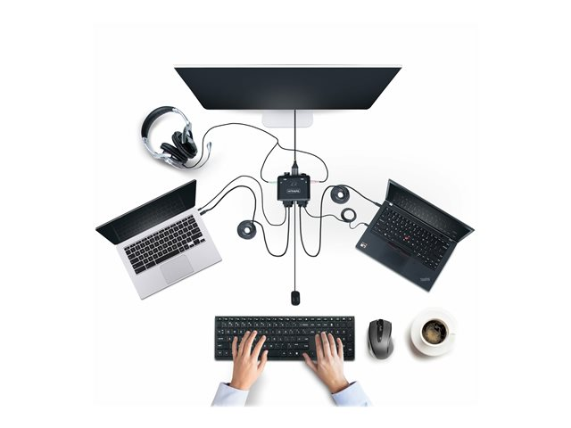 StarTech.com 2-Port USB-C Cable KVM Switch, 4K 60Hz DisplayPort Output, Compact KVM with 4ft/1.2m USB Type-C/Audio Integrated Cables, Bus Powered - Remote Push-Button/Hotkey Switching (C2-D46-UC2-CBL-KVM) - Omkopplare för tangentbord/video/mus/ljud - kompakt - 2 x KVM/ljud - 1 lokal användare - skrivbordsmodell C2-D46-UC2-CBL-KVM