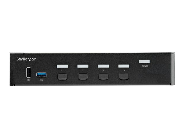 StarTech.com 4-ports HDMI KVM-switch - En skärm 4K 60 Hz Ultra HD HDR - Desktop HDMI 2.0 KVM-switch med 2 portar USB 3.0-hubb (5 Gbit/s) och 4x USB 2.0 HID, ljud - Snabbtangenter för omkoppling - TAA - Omkopplare för tangentbord/video/mus/ljud - 4 x KVM/ljud - 1 lokal användare - skrivbordsmodell, rackmonterbar - TAA-kompatibel