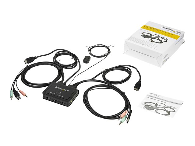 SV211HDUA4K 2-Port 4K60Hz HDMI-kabel KVM-switch med ljud- och fjärrswitchkontroll ger dig kontroll över två datorer utrustade med HDMI och USB med en enkel bildskärm, tangentbord, mus och ljudutrustning. 4K60 Bild och full ljudsupport Den dubbla HDMI KVM-switchen stöder upplösningar på upp till 4K vid 60 Hz och kan enkelt driva en stor HDMI-skärm för maximal visningsyta. Med stöd för separat 3,5 mm stereoljud ger KVM-omkopplaren full ljudkompatibilitet över anslutna datorer. Operativsystemsoberoende Medan de stödjer de flesta operativsystem för PC är denna HDMI KVM-switch OS-oberoende, vilket innebär att den fungerar med Mac-datorer (en adapter kan behövas) och alla andra bärbara datorer och surfplattor. Liknande användning Strömställaren har en fjärrknapp på en 1,5 meter integrerad kabel som kan placeras på en lättillgänglig plats, samt snabbtangenter för tangentbord och PC eller Mac -kompatibel programvara för att växla mellan systemen. StarTech.com KVM-switchar och konsoler StarTech.com erbjuder ett brett utbud av högkvalitativa KVM-switchar och KVM-relaterade produkter som hjälper dig att få åtkomst till dina system effektivare utan kostnaden och trasslet med extra tangentbord, möss och skärmar. SV211HDUA4K täcks av StarTech.coms 2-årsgaranti och gratis livstidsgaranti på teknisk support.
