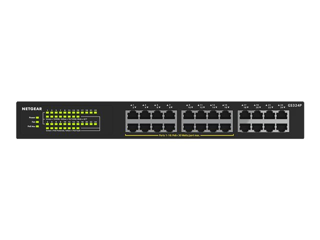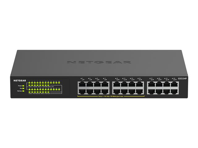 NETGEAR GS324P - Switch - ohanterad - 16 x 10/100/1000 (PoE+) + 8 x 10/100/1000 - rackmonterbar, skrivbordsmodell - PoE+ (190 W)