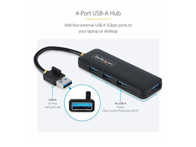 StarTech.com 4-Port USB-A Hub, 5Gbps, Bus Powered, Small Travel Mini Hub - Hubb - 4 x USB 3.2 Gen 1 - skrivbordsmodell