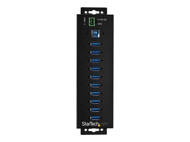 Denna TAA-kompatibla, industriella USB 3.0-hubb med 10 portar ger dig skalbarheten, strömsättning och flexibiliteten du behöver i tuffa industrimiljöer, produkt-och reparationsverkstäder, konferensrum eller arbetsstationer på kontoret. Med sin kraftiga metallinneslutning av industrikvalitetär den designad att uppfylla avancerade krav på att ansluta många enheter i fabriks- och kontorsmiljöer. Perfekt för tuffa miljöer Denna industriella USB-hubb ger tillförlitlig prestanda med ett kraftfullt metallhölje. Uttagsplinten på 10-24 V likström ger dig flexibilitet med strömsättning av hubben, baserat på dina egna strömförutsättningar. Den tåliga hubben är perfekt för fabriksmiljöer eftersom den stöder ett brett intervall för driftstemperaturer (0 °C till 70 °C) och ger överspännings- och ESD-skydd till varje USB-port, vilket kan förhindra skador på dina anslutna enheter. Anslut och ladda flera USB-enheter Denna robusta USB 3.0-hubb är designad för många anslutningar och har 10 anslutningsportar för att ansluta fler USB-enheter och kringutrustning. Hubben stöder dessutom USB battery charging specification 1.2 och ger upp till 2,4 A till alla portar upp till maximalt 50 W totalt, så att du kan ladda dina mobila enheter snabbare än vad traditionella USB-portar tillåter. Placera hubben där du behöver den mest Med mångsidiga installationsalternativ kan du installera hubben där det passar bäst för din omgivning. Med inbyggda monteringsfästen och medföljande DIN-monteringsskenor kan du tryggt montera USB 3.0-hubben på de flesta underlag som en vägg, under ett skrivbord eller rack. Uttagsplinten på 10-24 V likström ger dig flexibilitet med strömsättning av hubben, baserat på dina egna strömförutsättningar. Du har möjlighet att driva den industriella hubben genom att ansluta hubben direkt till ett uttag med den medföljande extern strömadaptern för uttagsplint för en bekvämare och mer flexibel installation. Fungerar med äldre USB-enheter Den tåliga USB hubben stöder full USB 3.0-bandbredd på 5 Gbps och är dessutom bakåtkompatibel med tidigare USB-enheter. Du kan ansluta dina äldre tillägg tillsammans med dina nyare USB 3.0-enheter utan några störningar. HB30A10AME täcks av StarTech.coms 2-årsgaranti och gratis livstidsgaranti på teknisk support.
