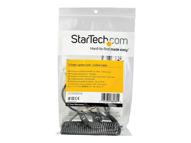 StarTech.com 6ft (1.8m) Self-Coiling Laptop Cable Lock, Portable 3-Digit Combination Security Cable Lock for K-Slot Laptop/Computer/Desktop/Device, Coiled Anti-Theft Steel Cable Combo Lock - 6 ft Coiled Cable Lock (LTLOCK3DCOIL) - Lås för säkerhetskabel - 1.8 m LTLOCK3DCOIL