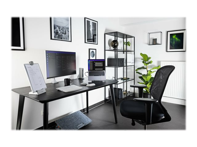 | Egenskaper | Upp till 50 ark säkerhetsklipp, stående/liggande läge, maxbelastning 3 kg, vikben, integrerad magnetisk whiteboard, smartphonehållare, integrerad kabelhantering, pennhållare, VESA-gränssnittsstöd |