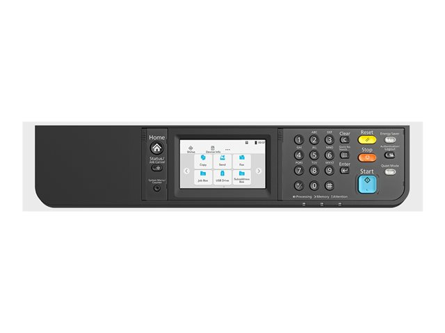 | Kontorsmaskinfunktioner | Proof and Hold, Job Storage, Quick Copy, Personligt tryck, Lösenordskryptering för autentisering, EcoPrint, IPP-utskrift, utskrift från e-post, skanna till e-post, skanna till FTP, skanna till PC, skanna till USB-värd, skanna till WSD |