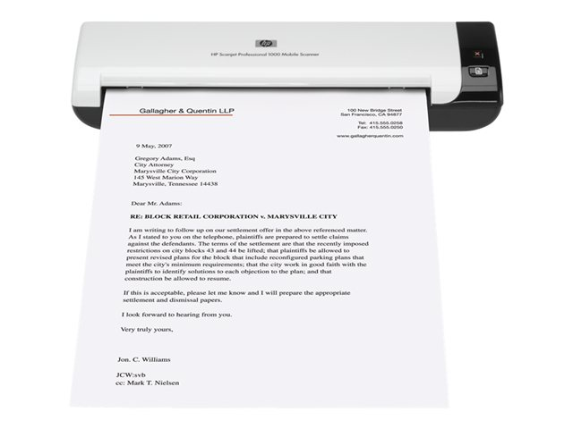 HP ScanJet 1000 Professional Mobile Scanner - Arkmatad skanner - 216 x 864 mm - 600 dpi x 600 dpi - upp till 100 scanningar per dag - USB 2.0