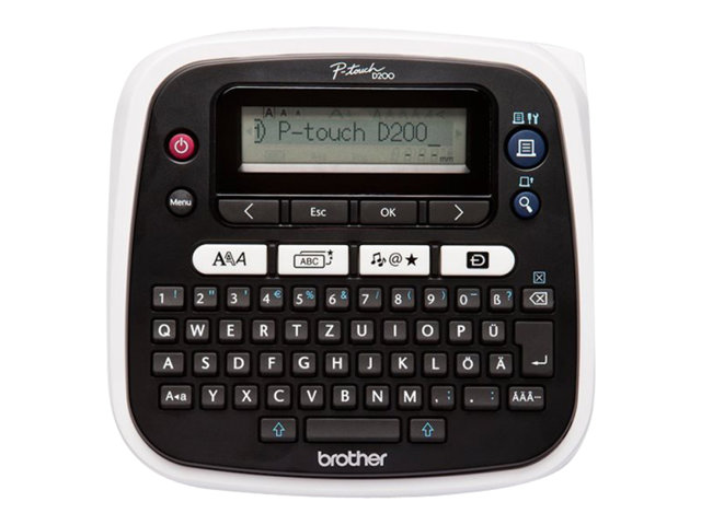 Brother P-Touch PT-D200VP - Etikettskrivare - svartvit - termisk överföring - Rulle (1,2 cm x 8 m) - 180 dpi - upp till 20 mm/sek - tvåradig utskrift, manuell avrivning