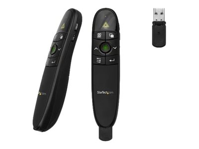 StarTech.com Wireless Presentation Remote with Green Laser Pointer - 90 ft. (27 m) - USB Presentation Clicker for Mac and Windows (PRESREMOTEG) - Presentationsfjärrkontroll - RF - svart PRESREMOTEG