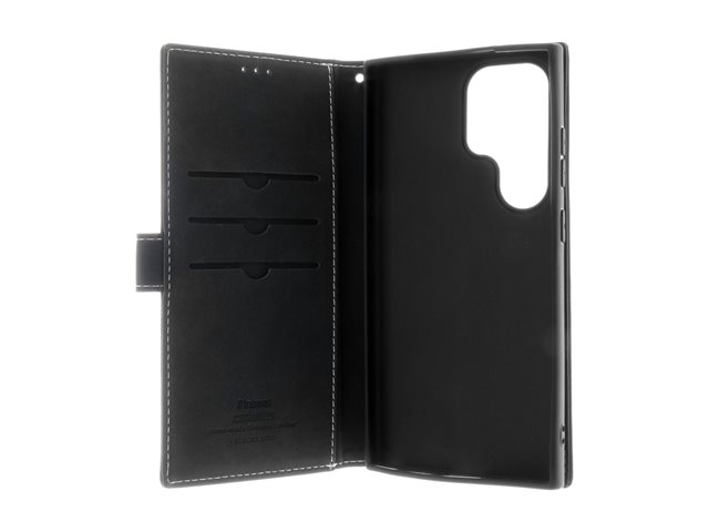 Insmat Exclusive - Vikbart fodral för mobiltelefon - läder, termoplastisk polyuretan (TPU), galvaniserad bronsring, bomullssömmar - svart - för Samsung Galaxy S26 Ultra