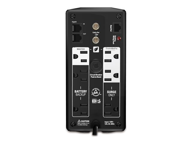 | Kontaktdetaljer för uteffekt | 3 x ström, NEMA 5-15 (spänningsutjämnare) 3 x ström, NEMA 5-15 (UPS och spänningsutjämnare) |